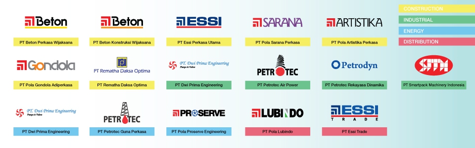 POLA Group has about totally 30 shareholders, more than 1,200 employees and more than 40 offices including manufacturing plant and warehouses all over Indonesia. The operation is managed under 3 Holding Company : PT Pola Inti Perkasa (PIP), PT Pola Petro Development (PPD) and PT Pola Essi Perkasa (PEP). With all combined, POLA Group has been acknowledged as a group of companies that meets the needs of specialties in professionals.